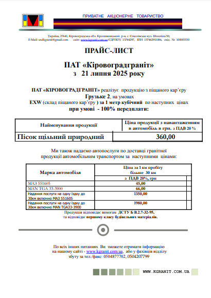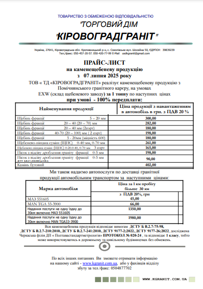 НАДАЄМО ПОСЛУГИ ПО ДОСТАВЦІ ГРАНІТНОЇ ПРОДУКЦІЇ